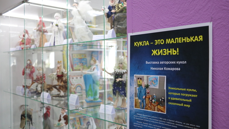 В экспозиции представлены 22 уникальные куклы, созданные руками народного умельца Николая Михайловича Комарова. Здесь и элегантная Снегурочка, прекрасная Царевна Лебедь, загадочная Ундина, владычица подземных богатств – Хозяйка Медной горы. Все без исключения работы талантливого мастера задерживают на себе взгляд и погружают в удивительный мир мифом, легенд и приданий. Особо впечатляет разнообразие используемого материала, Николай Михайлович не ограничивается «простой» фурнитурой, а использует в качестве декоративных элементов ракушки, мох, лебяжий пух.