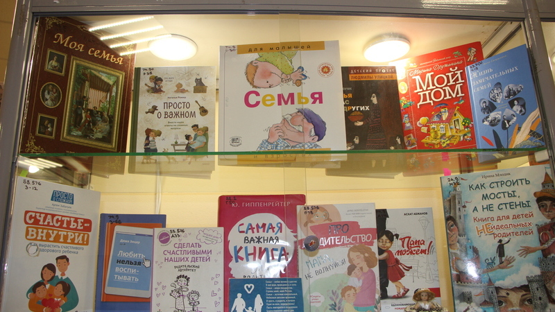 Наполнение экспозиции достаточно разнообразно и многопланово, максимально отражает данную тему. В экспозиции представлено более 120 источников информации: книги, периодические издания, путеводители по книгам, библиографические издания, работы из музея детской рукописной книги, текстовые факты, совместные «мастерилки» малышей и их родителей. Есть здесь и «Семейный календарь», даты, которого можно отметить всей семьей.