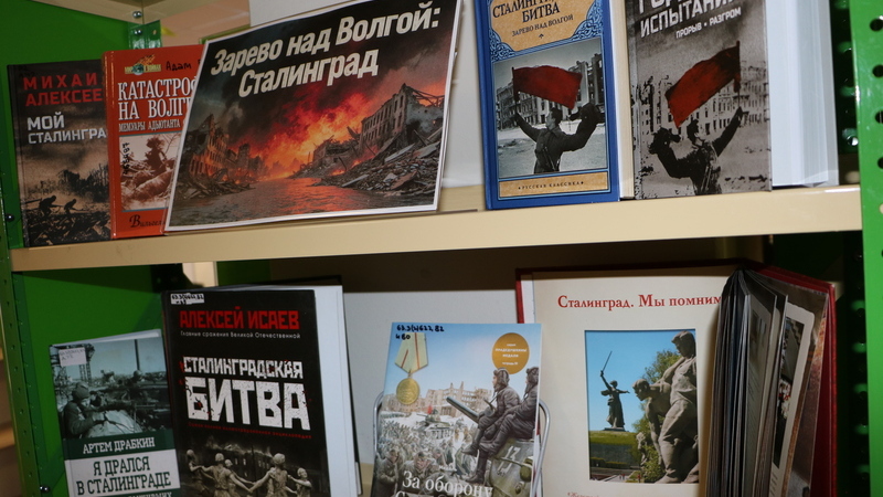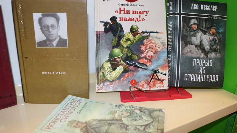 200 дней и ночей длилась ожесточенная битва за Сталинград, которая переломила ход истории. На выставке раскрывается динамичность течения этого грандиозного сражения. Здесь представлены документальные очерки, воспоминания участников тех событий, а также художественные произведения: «Живые и мёртвые» Константина Симонова, «Горячий снег» Юрия Бондарева, «В окопах Сталинграда» Виктора Некрасова, «Жизнь и судьба» Василия Гроссмана и другие. Книги рассказывают о масштабе Сталинградской битвы, о самоотверженности, воле и патриотизме.