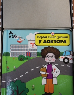 Первая книга знаний. У доктора : [развивающий игровой набор с книгой, пазлами, деревянной машинкой и вертолетом] : детям до 3 лет / отв. редактор М. Бутикова ; перевод с английского Е. Егорова. – Москва : Азбука-Аттикус, 2018. – [64] с. : цв. ил. + 2 игрушки + 16 элементов пазла. – (Читай, играй и учись!)