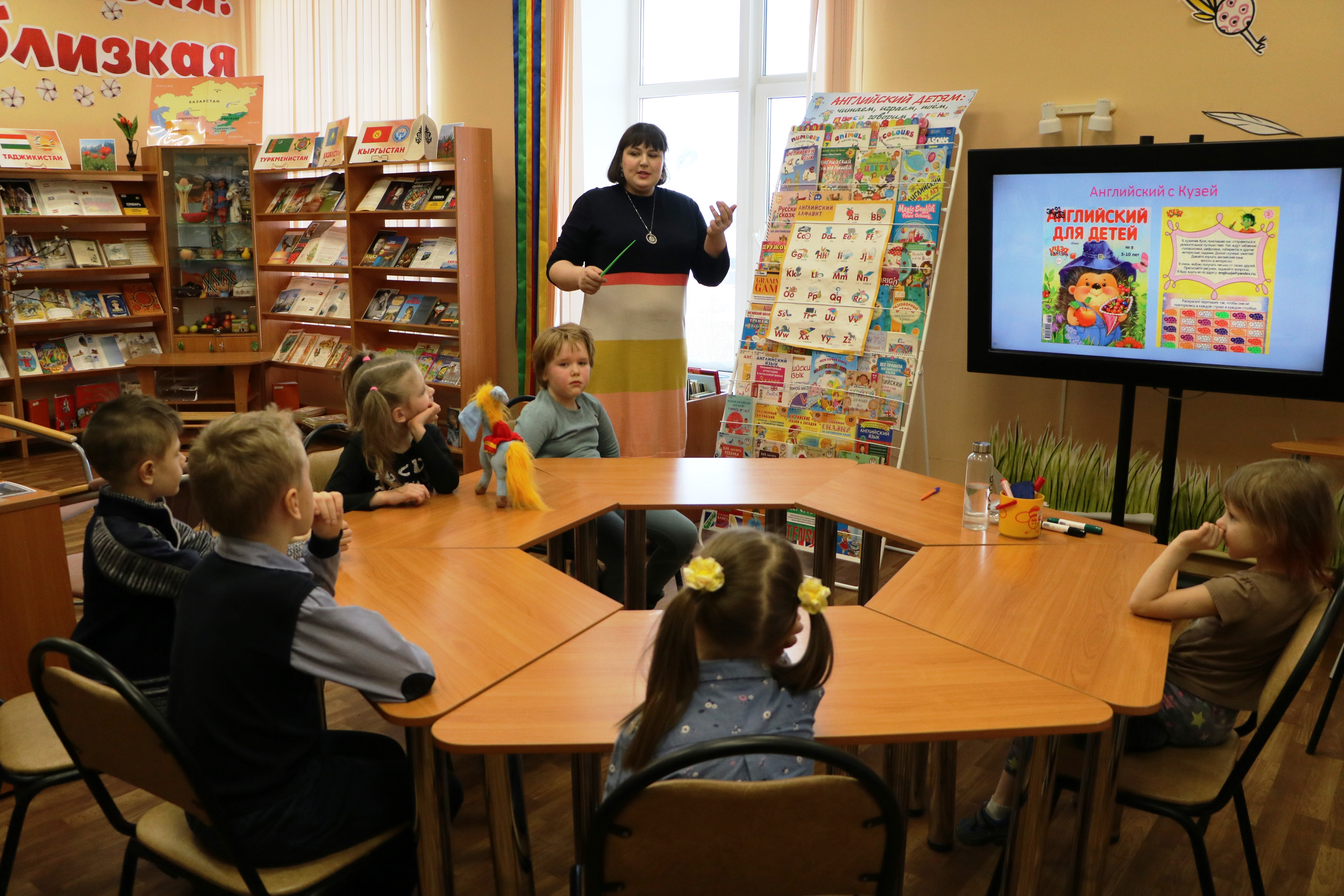 – «Детский английский»: интерактивные занятия для детей 6-8 лет. Проходит по воскресеньям с октября по апрель включительно. Занятия проходят в игровой форме. Группа не более 10 человек, формируется до октября.