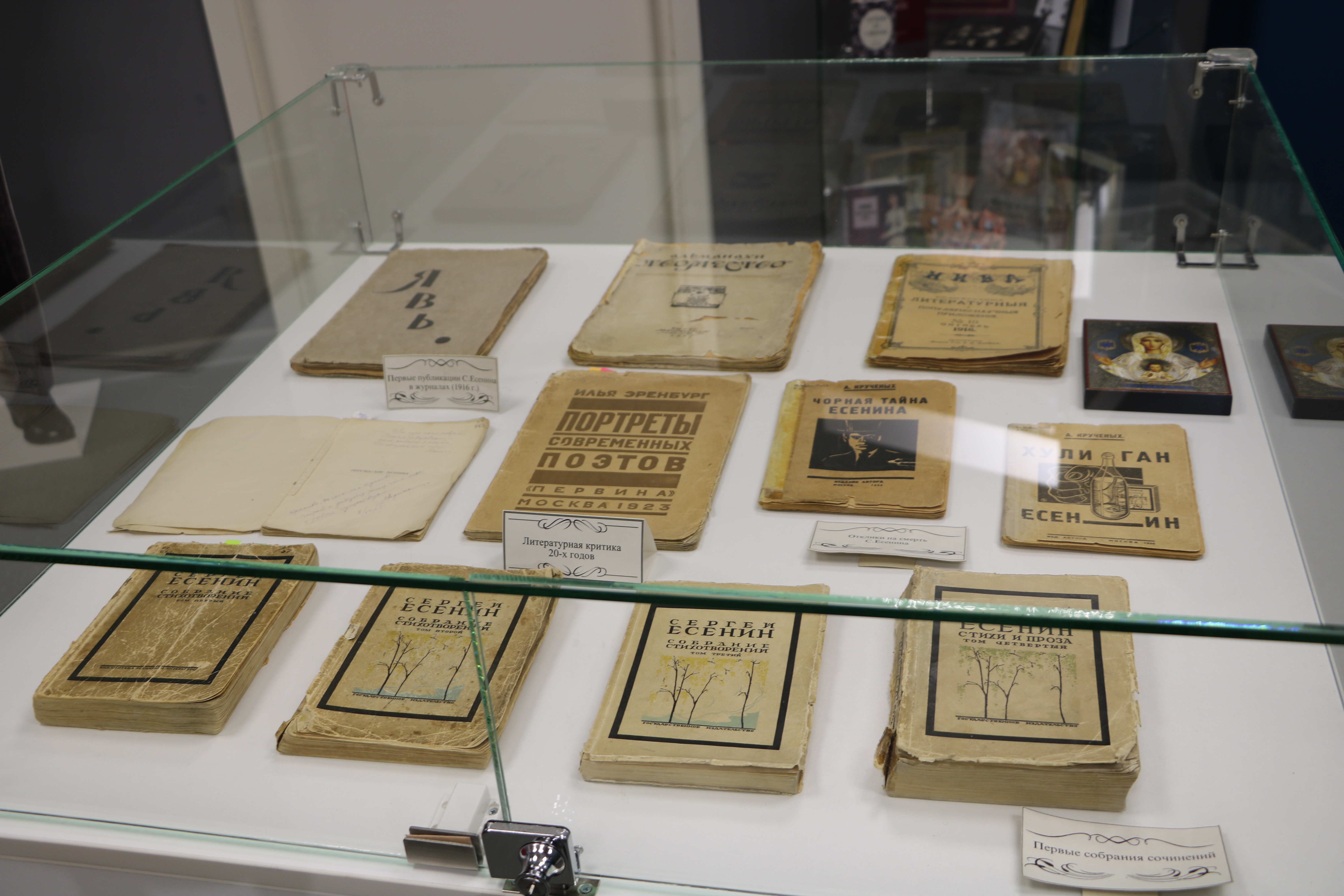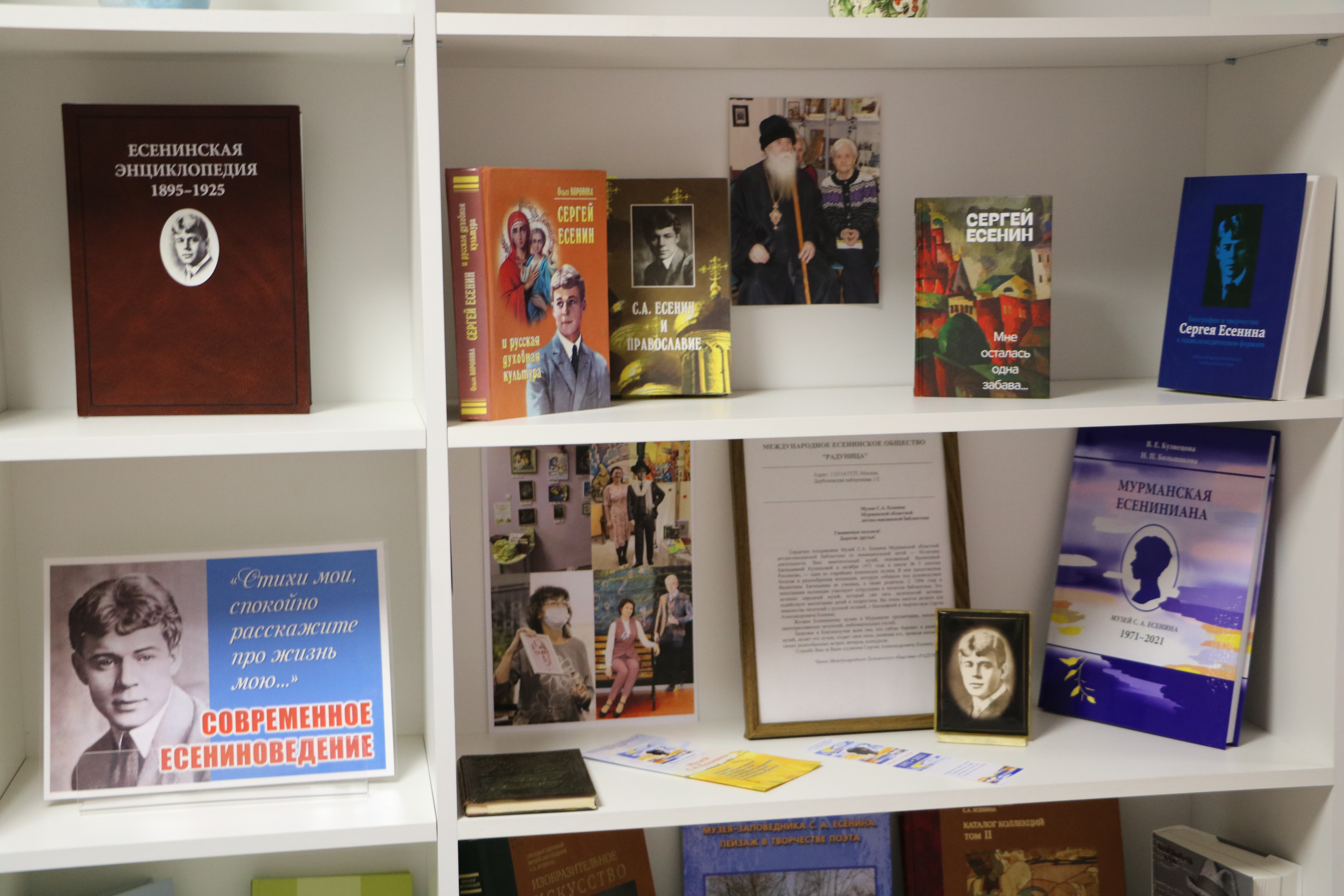 Фонды музея пополнились новыми книжными экспонатами, среди них вновь изданные поэтические сборники произведений поэта, первый том «Есенинской энциклопедии» и выпущенная к юбилею музея книга «Мурманская Есениниана», в которую вошли литературно – критические статьи и художественные произведения, посвященные северянами любимому поэту.
