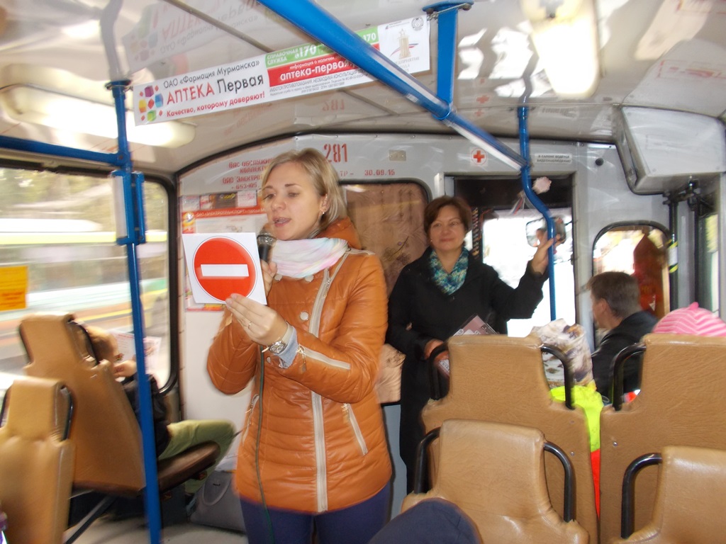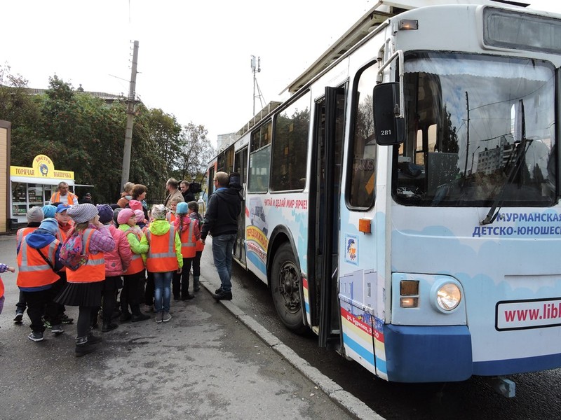 В этот день второклассники мурманской гимназии № 9 путешествовали по городу в именном троллейбусе по маршруту № 3 от улицы Гаджиева через центр города. Экскурсоводами для детей в этом путешествии были библиотекари Мурманской областной детско-юношеской библиотеки и инспектор по особым поручениям отдела пропаганды ГИБДД – Ратова Ольга Александровна. По ходу движения троллейбуса они рассказали школьникам о городских достопримечательностях, а также поиграли в интересные познавательные игры, связанные с транспортом Мурманска. Сотрудник ГИБДД познакомила ребят с правилами дорожного движения и поведения на улице и проезжей части, сообщила о наиболее опасных и сложных для пешеходов участках города, где нужно быть особенно внимательными.