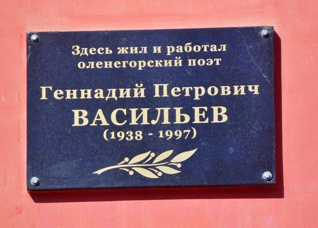 12 ноября 2005 года на доме № 6 по ул. Советской была открыта мемориальная доска оленегорскому поэту Геннадию Петровичу Васильеву. «В его стихах чудесные метафоры, жизнь и юмор. В них – тепло и душа. Мы уйдем, а его стихи останутся», – сказал мурманский поэт Виктор Тимофеев на торжественной церемонии открытия.