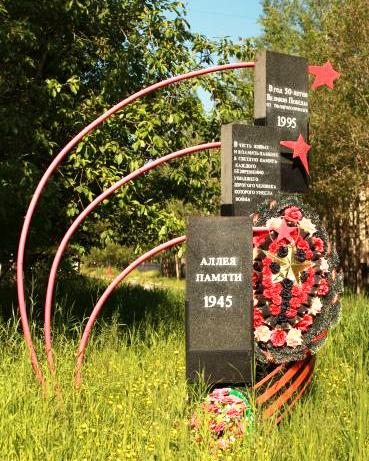 В 1995 году в память о солдатах Великой Отечественной, не вернувшихся с войны, было решено заложить Аллею памяти, здесь был установлен памятный знак, представляющий собой три плиты из зелёного гранита. На них текст «В память павших и во славу живых».