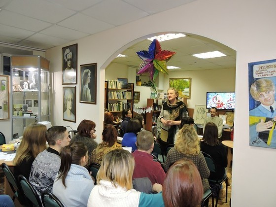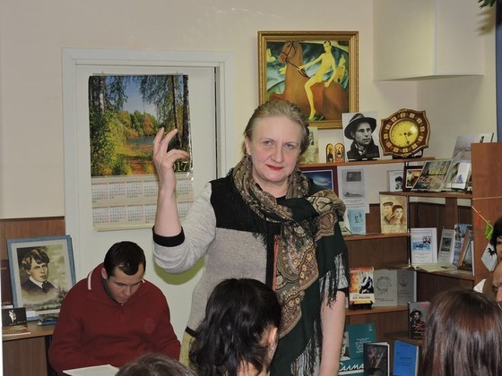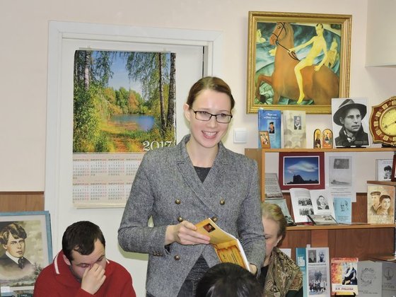 Есенинский музей с трудом вместил всех желающих послушать признанных поэтов города и самостоятельно принять участие в обсуждении темы. Руководитель секции, кандидат филологических наук, доцент кафедры русской филологии и массовых коммуникаций Мурманского арктического гуманитарного университета Людмила Львовна Иванова,