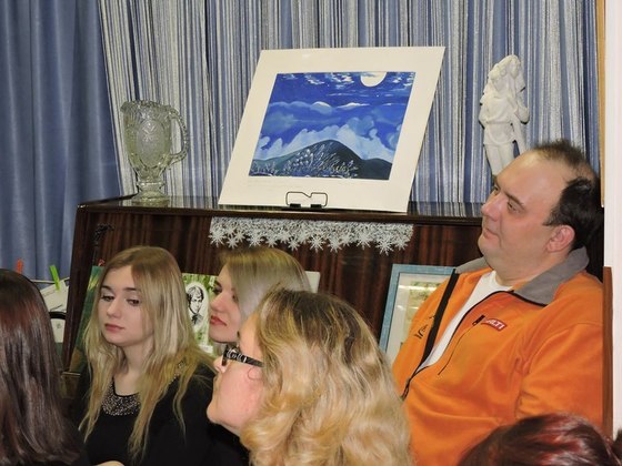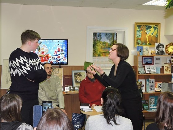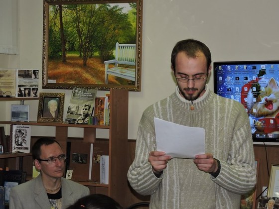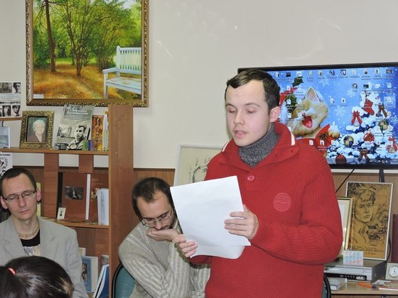 предоставила слово Николаю Владимировичу Колычеву, известному мурманскому писателю и поэту. Николай Владимирович рассказал о тенденциях современной поэзии, а также прочитал стихи Дмитрия Михайловича Балашова и свои собственные.