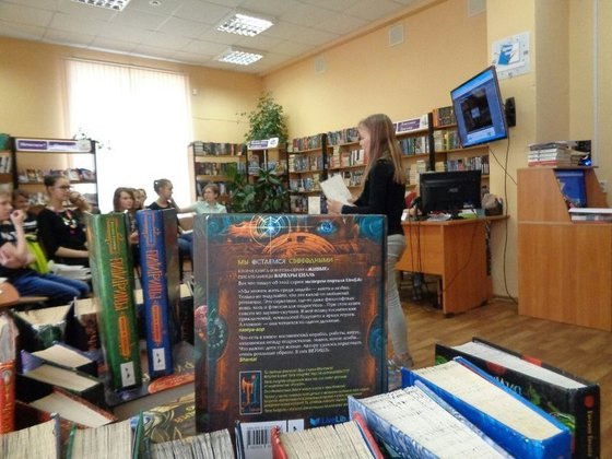 В самый разгар сходки неожиданно ворвалась Полина с ужасным известием: злые духи набирают силу, чтобы захватить мир и запретить чтение! Так начался запланированный квест, в ходе которого ребятам пришлось путешествовать по всей библиотеке и решать загадки, чтобы найти два амулета, в которых спрятались демоны, и кинжал, с помощью которого их можно было победить. К счастью, участники вовремя справились с заданиями и победили злыдней!