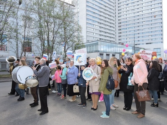 Несмотря на прохладную погоду, настроение было праздничным, ведь многие накануне получили подарки за победу в конкурсе, а часть детей с удовольствием поучаствовали во встрече с заместителем губернатора Мурманской области Инной Олеговной Погребняк.