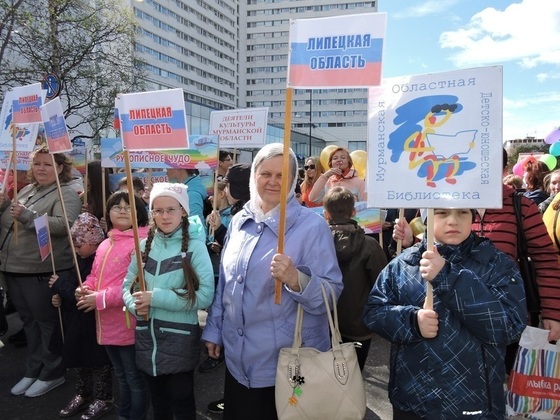 Дети несли в руках эмблемы Международного конкурса детской рукописной книги, которому исполнился 21 год, логотип Мурманской областной детско-юношеской библиотеки как основного организатора проекта, флажки территорий Российской Федерации – участниц конкурса, растяжки «Детское рукописное чудо», транспаранты «Антология детской рукописной книги».