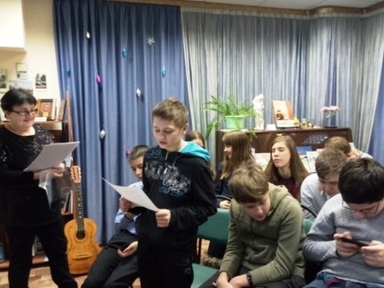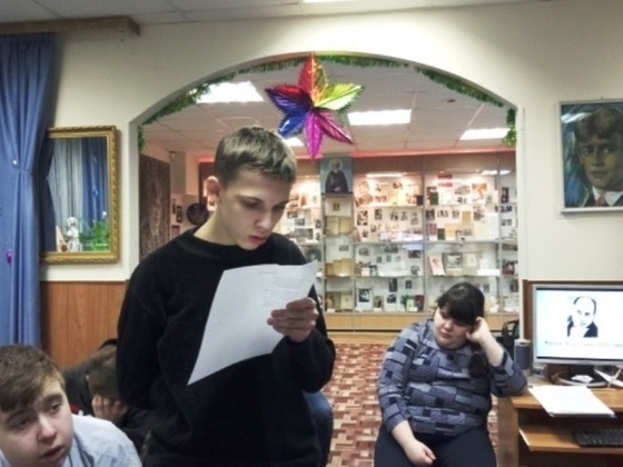 С первых же слов Марина Геннадьевна Габриелян, главный библиотекарь Есенинского музея, наш сегодняшний гид по творчеству Н.Рубцова, заворожила и ребят, и взрослых своим рассказом о жизни и творчестве нашего любимого поэта. Искусное владение словом, стихи Рубцова, звучащие в исполнении Марины Геннадьевны, в записях самого автора, сразу же настроили детей на плодотворное сотрудничество. Они также приняли активное участие в празднике поэзии и прочли любимые стихи замечательного поэта-земляка: