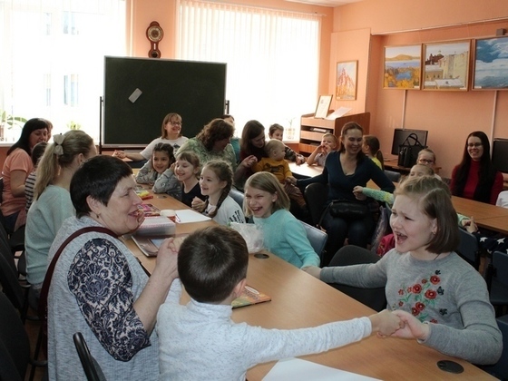 Вначале дети и родители отправились в Город Сказок, где познакомились с Бабушкой и её внучкой Любавушкой, во всех делах помощницей, доброй и красивой девочкой. Они очень обрадовались гостям.