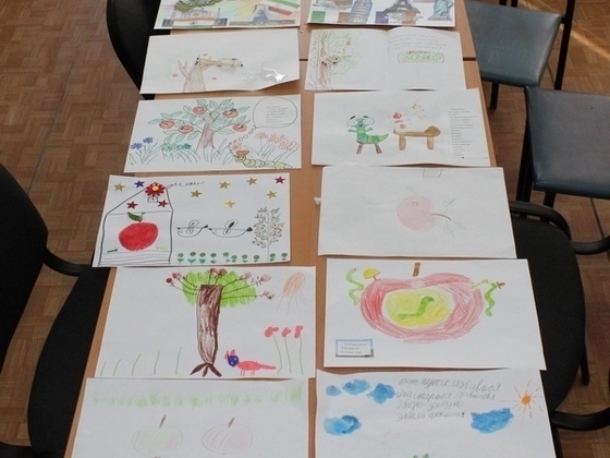 На берегу Реки росла яблонька, а на ней яблочки спелые, наливные и в одном из них жил кто-то. А кто, дети отгадали, прослушав стихотворение Б. Заходера «Энтличек-пентличек». Каждая строчка стихотворения – это загадка, которую интересно отгадывать. Детишки вместе с родителями проиллюстрировали строчки-загадки рисунками-отгадками, а сотрудники библиотеки решили соберать их в книгу и обязательно подарить Бабе Яге.