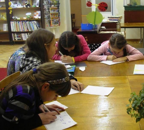 Юные журналисты собираются в библиотеке два раза в неделю. На занятиях группы юных журналистов творческие задания начинаются с обычных форм развития речи: дети сами сочиняют сказки, придумывают загадки, учатся писать письма, рецензии и т.д. В процессе этой работы развиваются литературно-творческие способности читателей.