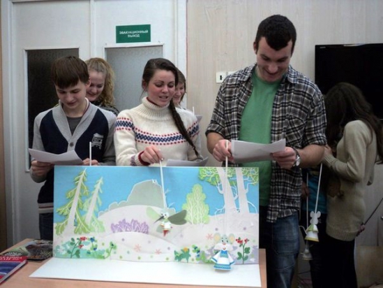 Бывают у нас и особенные гости, например, встреча «На зеленой волне» с норвежскими студентами Высшей народной школы Пасвик, которые рассказали нашим читателям о себе, о своих увлечениях и экологических проектах. В заключении встречи они приняли участие в русско-норвежской постановке саамской сказки «Мышонок – быстрые лапки». Играли спектакль на английском языке, после небольшой репетиции. Наградой артистам стали улыбки зрителей и бурные аплодисменты в конце спектакля. Гости остались очень довольны теплым приемом и получили массу положительных эмоций и впечатлений.