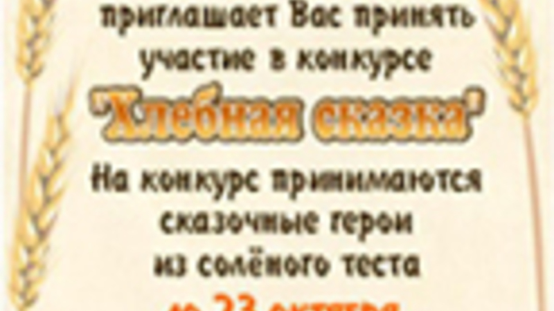 Маленькие ребятишки, девчонки и мальчишки, а также их родители!Веселый колобок и отдел обслуживания дошкольников приглашают вас принять участие в конкурсе «Хлебная сказка»До 23 октября на конкурс принимаются сказочные герои из соленого теста. До встречи на празднике!
