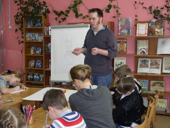 А в 14 часов начался мастер-класс. Ребята увлечением рисовали героев комиксов вместе со Стивеном Вебстером. Казалось, никто не устал, и не хотел уходить. Было интересно и взрослым, и детям.