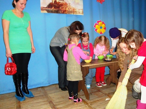 Затем помогали Мальчику-с-пальчик убежать от Людоеда в сапогах-скороходах. Кот в сапогах приготовил хитрое задание, но ребята разгадали все его хитрости. Много помощников оказалось у Золушки – девочки с мамами помогли ей справиться с заданиями злой мачехи.
