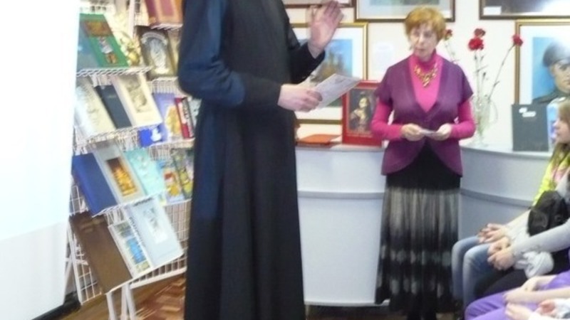Встречу открыла замдиректора Мурманской областной детско-юношеской библиотеки Марина Елкина, которая познакомила присутствующих с книжной выставкой «Библия – книга на все времена».