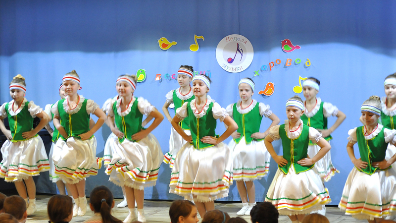 Мурманские школьники младших классов из общеобразовательной школы №1 и прогимназии № 40 познакомились с танцевальным искусством народов России и мира, посмотрели красочную презентацию, узнали историю русского, белорусского, татарского танца и увидели их на сцене в исполнении юных артистов из Детской школы искусств №3.