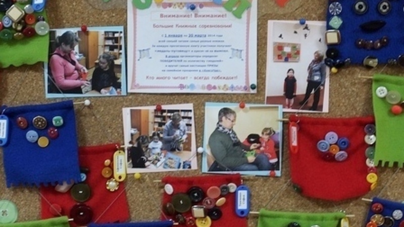 Результаты чтения можно было увидеть на стенде «Пуговичный Олимп», где каждая семья-участник представляла свой вымпел. На него, как доказательство успехов, за каждую прочитанную книгу пришивалась пуговица: прочитали толстую книгу – большая пуговица, прочитали тонкую – шьем маленькую пуговку. Причем тут пуговицы? Да просто они круглые и, если включить фантазию, то очень похожи на медали.
