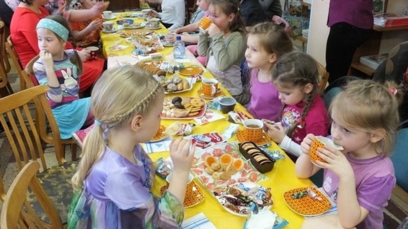Продолжился праздник традиционным чаепитием и дружеским общением в интерактивном литкафе «КнигоЧай».