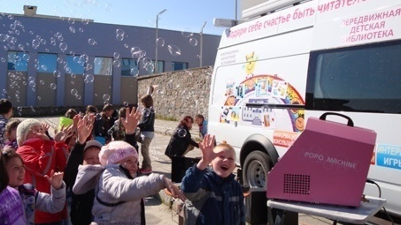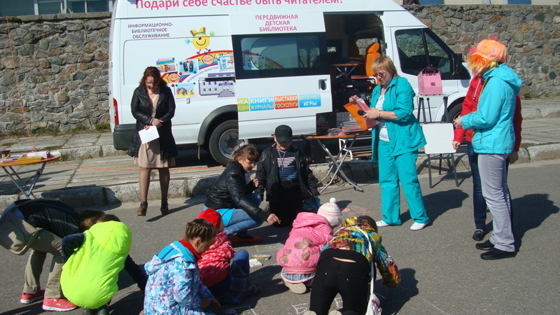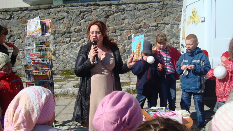 Солнечный день прибавил настроения ребятам, участникам веселого мероприятия на игровой площадке перед ДК «Современник». В гости к юным снежногорцам из оздоровительного лагеря при школе №266 приехал библиомобиль Мурманской областной детско-юношеской библиотеки