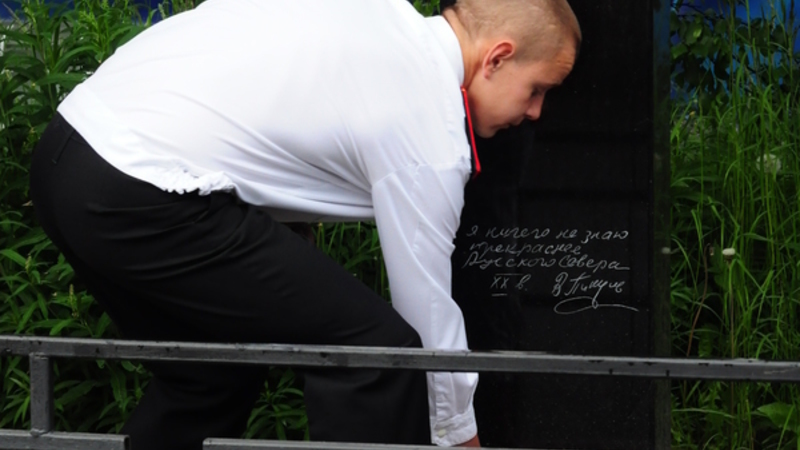 Началось мероприятие на литературной аллее у бюста Валентину Пикулю с приветственного слова Владимира Мальцева, сопредседателя регионального отделения общероссийского народного фронта и председателя Мурманского отделения общероссийского движения поддержки флота.