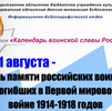 01.08.2014Информационно-библиографический отдел Мурманской областной детско-юношеской библиотеки подготовил памятку «1 августа – День памяти российских воинов, погибших в Первой мировой войне 1914-1918 годов» из серии «Календарь воинской славы России»