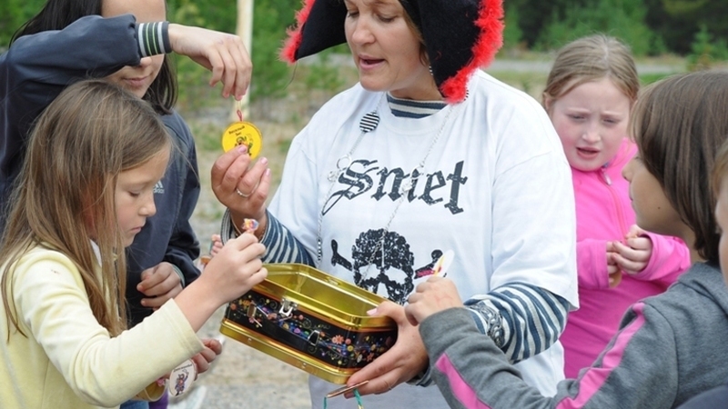 На открытой площадке лагеря прошел веселый пиратский праздник «На абордаж». Ребята на импровизированном корабле отправились на поиски сокровищ, на пути им встречались испытания.