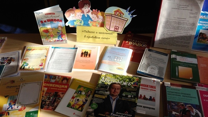 В холле Мурманской областной детско-юношеской библиотеки была красочно оформлена выставка «Педагог и школьник в правовом поле». Юные граждане с интересом рассматривали книги: П. Астахов «Я и школа», Л. В. Петровская «Что делать, если…», С. А. Лавров «Первоклассные истории о правах». Взрослые знакомились с новым информационно-методическим пособием «Права родителей в рамках школьного образования», подготовленным сотрудниками отдела.