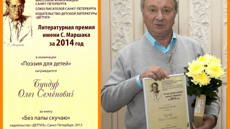 Эта награда вручается один раз в год за лучшее произведение для детей и юношества в трех номинациях – «проза», «поэзия» и «дебют». Олег Семенович был отмечен премией Маршака за книгу стихов «Без папы скучаю».