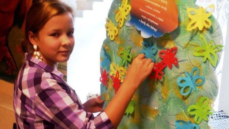 Все желающие выразили толерантное отношение к традициям и обычаям людей других национальностей, прикрепив разноцветных бумажных бабочек к макету дерева.