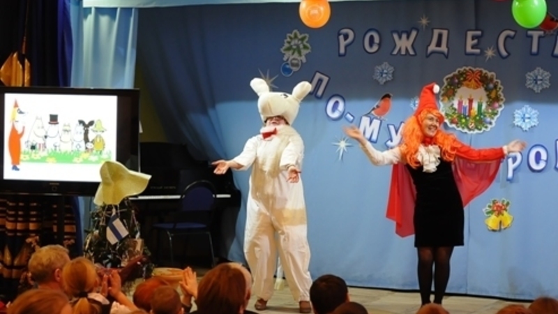 Гостей праздника ждала встреча с Муми-троллем и Муми-мамой. Его украсили танцы и песни, в том числе и на финском языке, в исполнении творческих коллективов Мурманска и Полярного. И все это при активном участии зрителей: они отгадывали загадки, пели песенку, украшали елку.