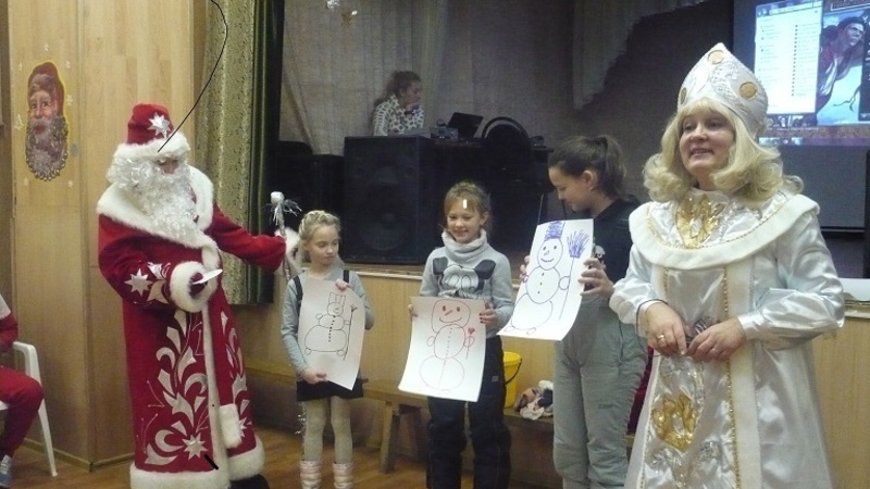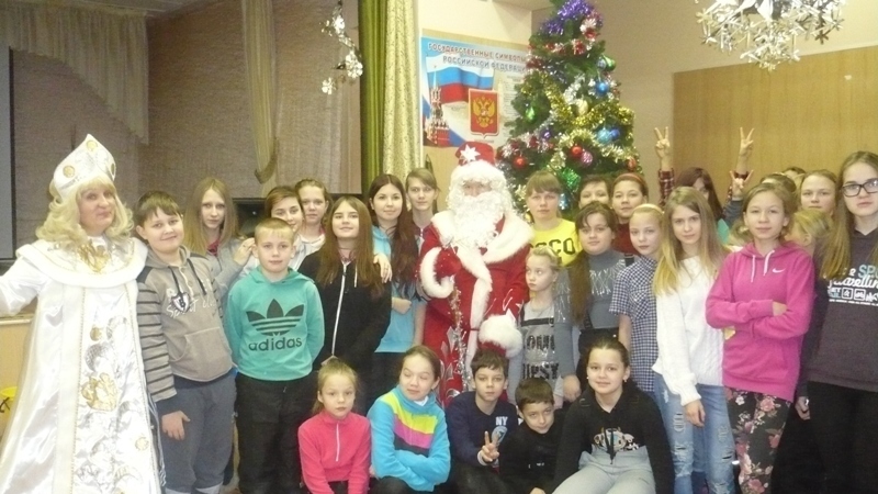 Дед Мороз и Снегурочка (Дежурко Анна Михайловна, библиотекарь отдела обслуживания 1-4 класса и Коновалова Людмила Григорьевна, главный библиотекарь отдела литературы по искусству) привезли к воспитанникам зимней смены самые дорогие новогодние подарки: мешок смеха, шуток и веселья.