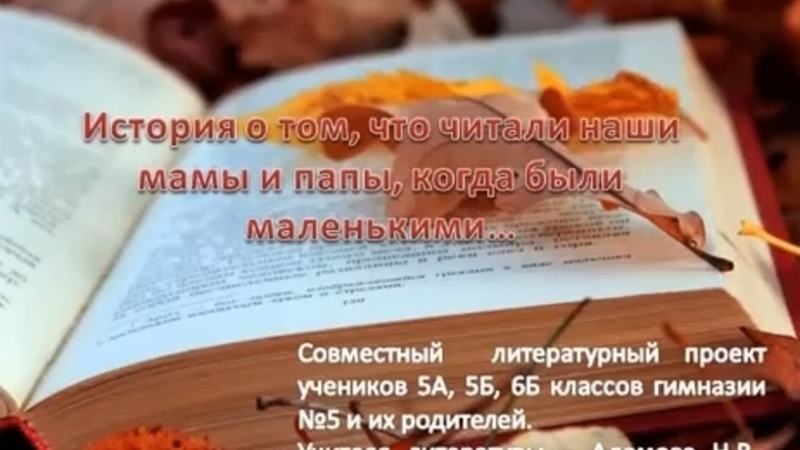 Посвящением Году литературы стал совместный проект учеников 5А, 5Б, 6Б классов мурманской гимназии №5 и их родителей. «Любимые книги детства» – мультимедийная история о том, что читали наши мамы и папы, когда были маленькими