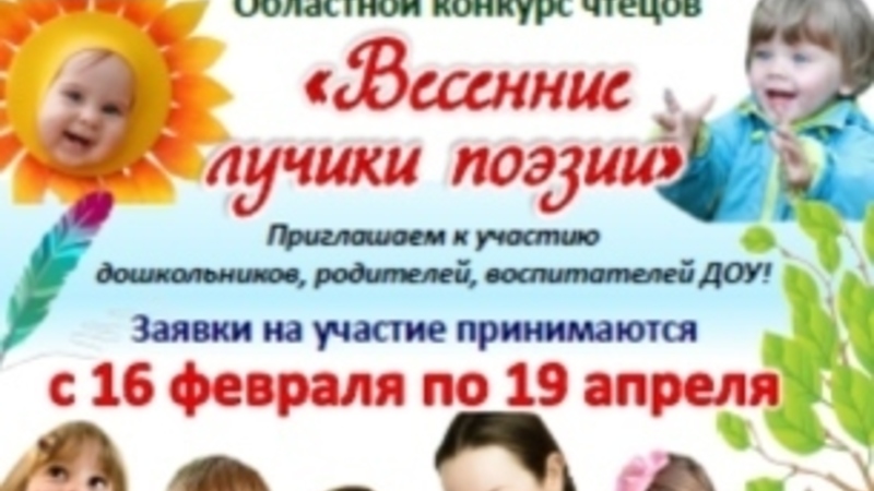 Отдел обслуживания дошкольников приглашает принять участие в Областном конкурсе чтецов «Весенние лучики поэзии» дошкольников, их родителей и воспитателей ДОУ