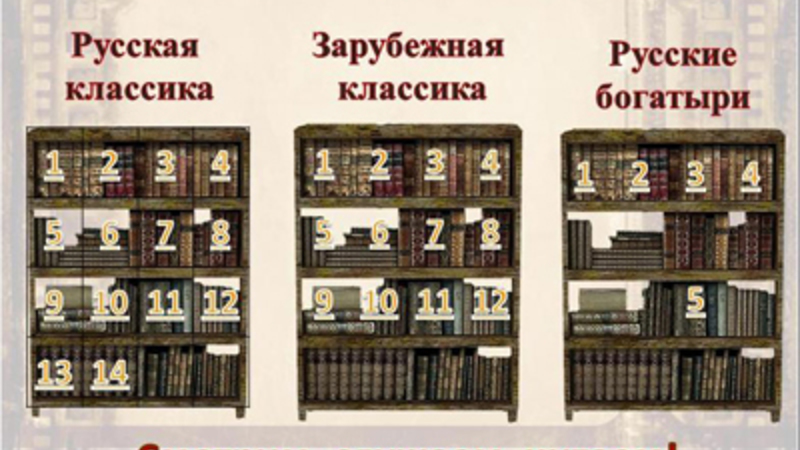 Участники игры увидят экранизации русской и зарубежной классики разных лет – художественные и анимационные фильмы. Услышат песни о литературных героях.