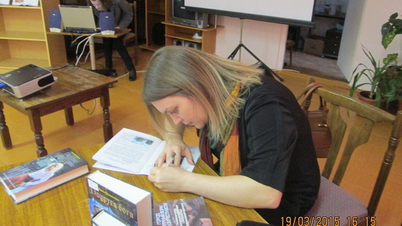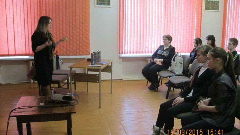 В Центральной городской библиотеке у нее состоялась встреча с восьмиклассниками и педагогами из поселка Африканда. Разговор получился интересный и содержательный.