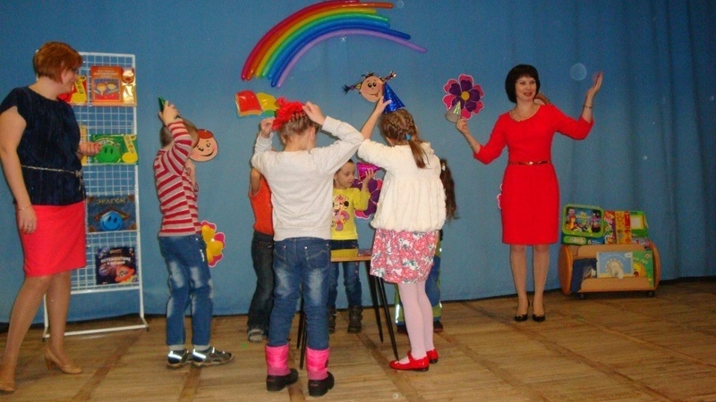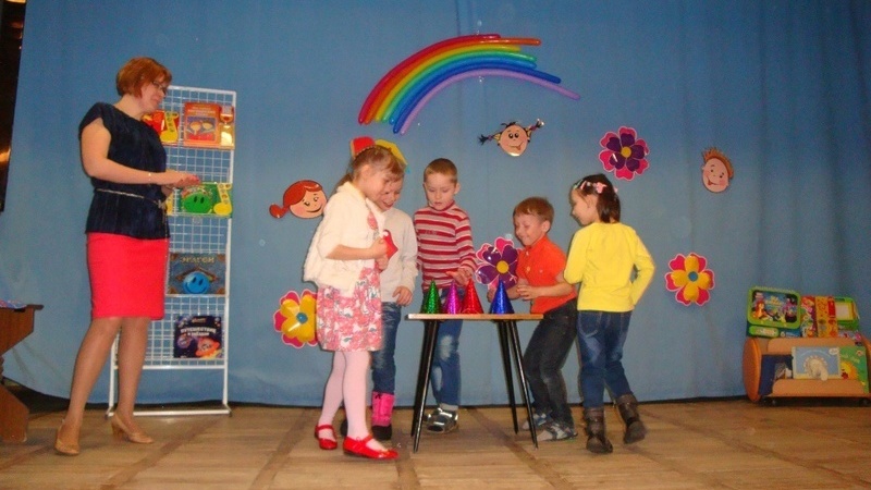 Ребятишки отгадывали загадки о сказочных героях, вместе читали стихи, поздравляли книги-юбиляры 2015 года, танцевали зажигательный танец «Радуга – дуга», превращались в разных животных, которые живут в книге-игре, участвовали в конкурсах: «Узнай книгу», «Дружба», «Чаепитие», «Разноцветный мир», «Веселые колпачки».