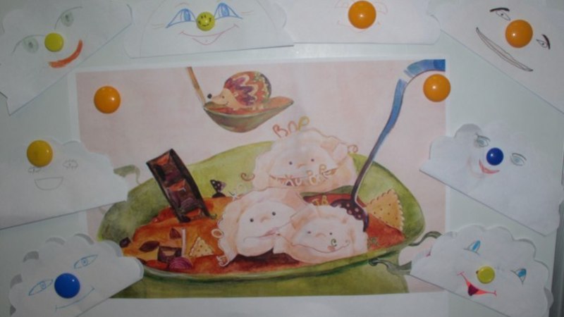И принялись ребята за дело! Вырезали белый бумажный круг и поместили туда «начинку» – веселые строчки из стихотворений современных детских поэтов Сергея Белорусца, Олега Григорьева, Михаила Яснова, Марины Бородицкой, Галины Дядиной, Юнны Мориц и др.: