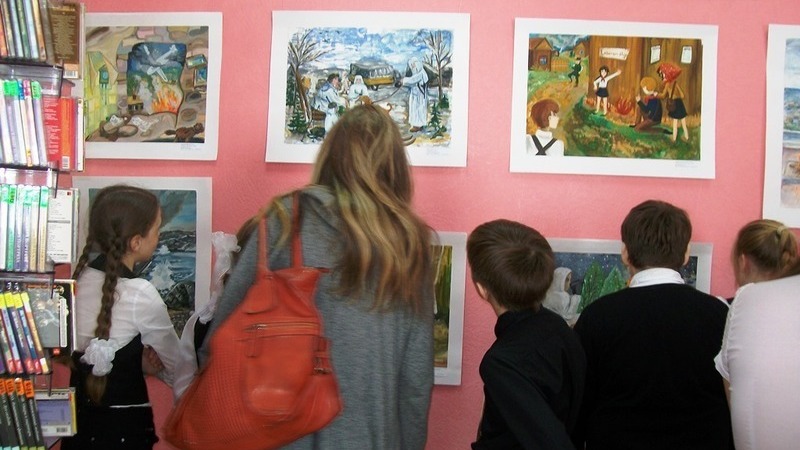 Юные художники раскрыли истории создания сюжетов своих рисунков и иллюстраций: одни посвящены родственникам, принимавших участие в Великой Отечественной войне, другие сюжеты взяты из прочитанных книг.