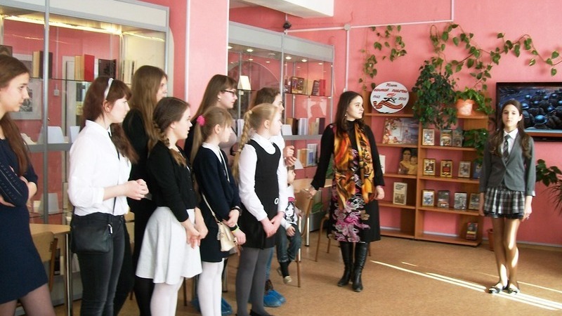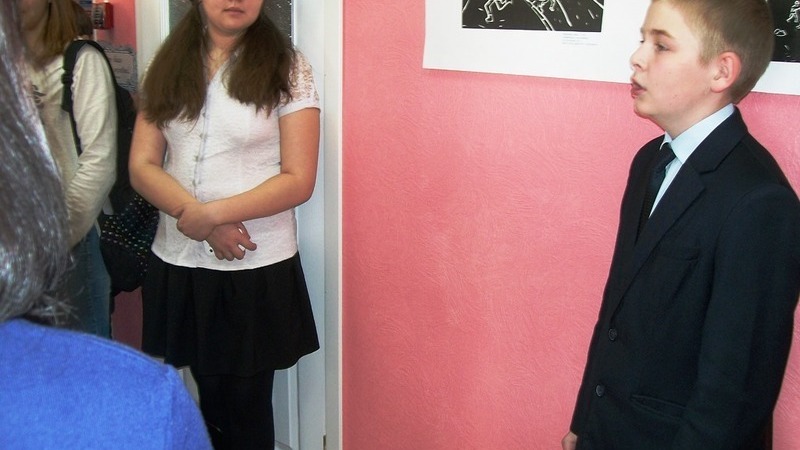На открытие выставки пришли гости – учащиеся 5-6 классов Мурманского политехнического лицея. Лицеисты читали стихи о войне.