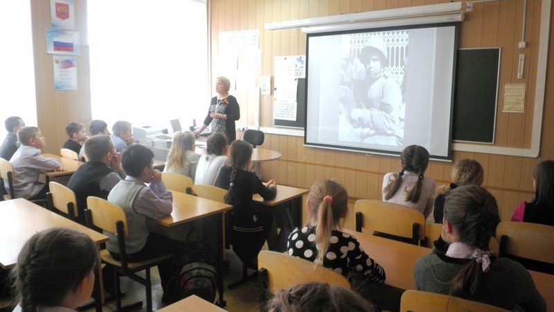 – в беседе-размышлении «Мужали мальчишки, мужали девчонки»; – уроках мужества «Мы родом не из детства – из войны» и «Небо покоряется смелым»;