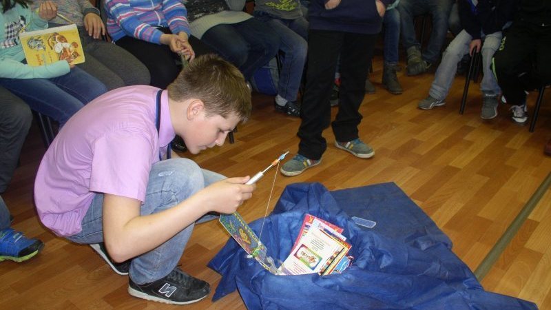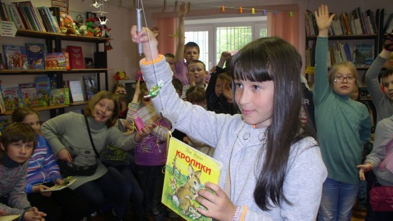 Во время путешествия по Океану любимых книг ребята имели возможность поучаствовать в литературной рыбалке и вернулись в порт с богатым уловом. Их добычей стали интересные красочные книжки.