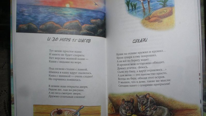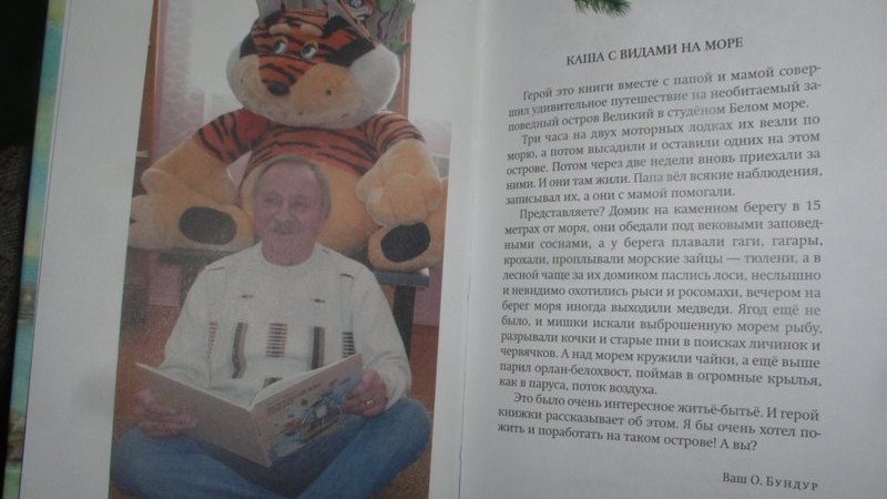 Книга «Каша с видами на море» появилась благодаря летним путешествиям Олега Семеновича на необитаемый заповедный остров Великий в Белом море. Интересное на острове житье-бытье: соседи здесь медведи, вдоль берега моря гагары гуляют – «то стаями, то по парам», «шишки падают на крышу, море шепчет: «Баю, бай», орлан-белохвост парит в вышине … В общем, много здесь всего удивительного.