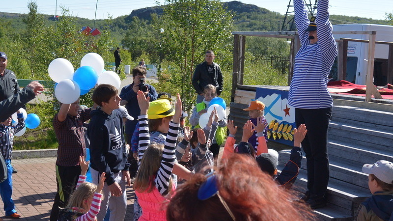 Ведущий праздника – любимец детворы капитан Врунгель – провел викторину на знание географии, исполнил вместе с ребятами морской танец «яблочко».