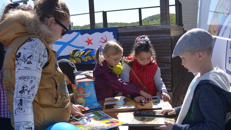 Неподдельный интерес детей вызвали замечательные книжки на морскую тематику, предоставленные Отделом необычных книг. Затем ребят ожидал праздничный морской салют из мыльных пузырей. Закончился праздник раздачей призов и сладостей из пиратского сундука, который вынесло волной на берег.