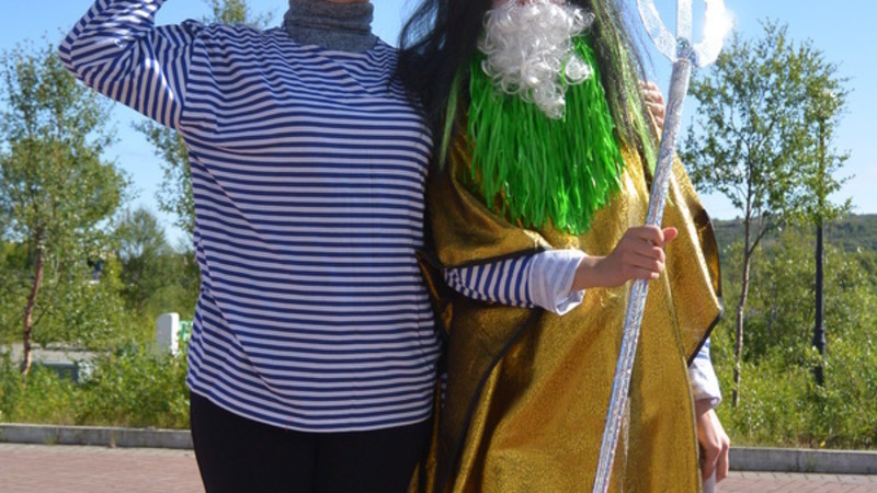 Громким криком сирен дети вызвали из глубин повелителя морей и океанов царя Нептуна, который пригласил их в свое царство. Под веселую музыку ребята отправились в подводное путешествие, во владения Нептуна.