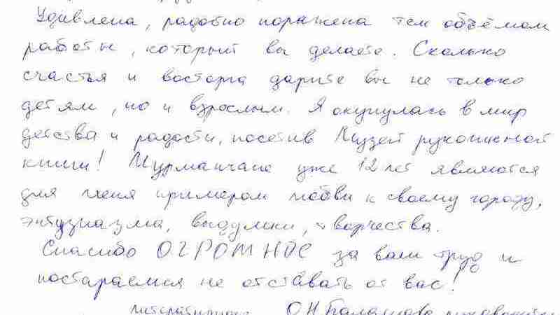 Предыдущий ее визит в Мурманск состоялся в 2003 году. Нам было что показать и рассказать. Музеи развиваются, находят формы популяризации материалов для привлечения новых и работы с постоянными пользователями. А вот творческая встреча с Ольгой Балашовой еще впереди.